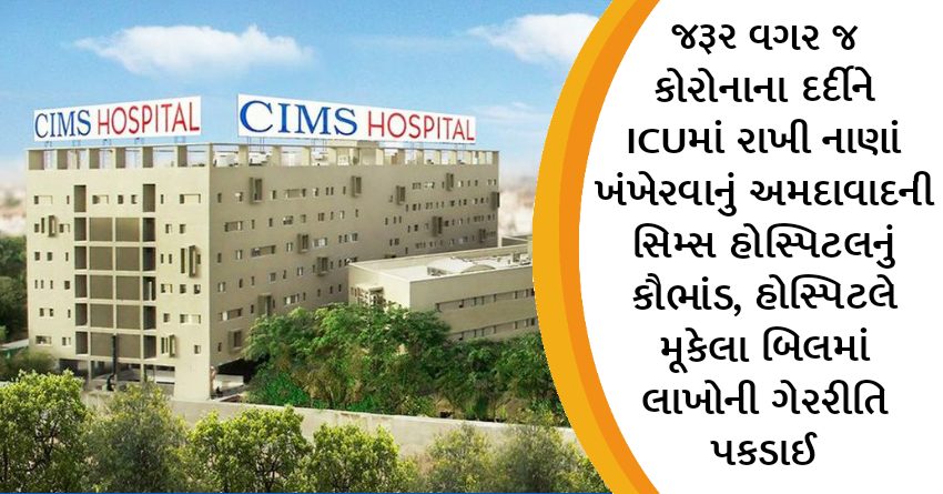 જરૂર વગર જ કોરોનાના દર્દીને ICUમાં રાખી નાણાં ખંખેરવાનું અમદાવાદની સિમ્સ હોસ્પિટલનું કૌભાંડ, હોસ્પિટલે મૂકેલા બિલમાં લાખોની ગેરરીતિ પકડાઈ