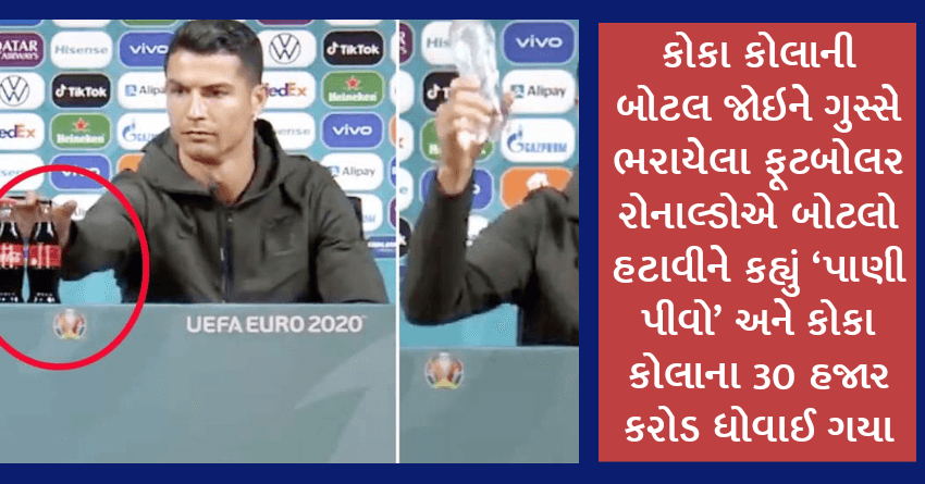 કોકા કોલાની બોટલ જોઇને ગુસ્સે ભરાયેલા ફૂટબોલર રોનાલ્ડોએ બોટલો હટાવીને કહ્યું ‘પાણી પીવો’ અને કોકા કોલાના 30 હજાર કરોડ ધોવાઈ ગયા