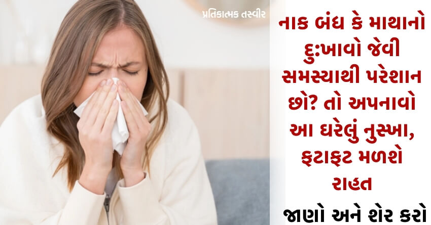 નાક બંધ કે માથાનો દુ:ખાવો જેવી સમસ્યાથી પરેશાન છો? તો અપનાવો આ ઘરેલું નુસ્ખા, ફટાફટ મળશે રાહત, જાણો અને શેર કરો