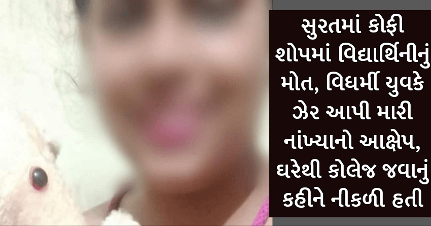 સુરતમાં કોફી શોપમાં વિદ્યાર્થિનીનું મોત, વિધર્મી યુવકે ઝેર આપી મારી નાંખ્યાનો આક્ષેપ, ઘરેથી કોલેજ જવાનું કહીને નીકળી હતી