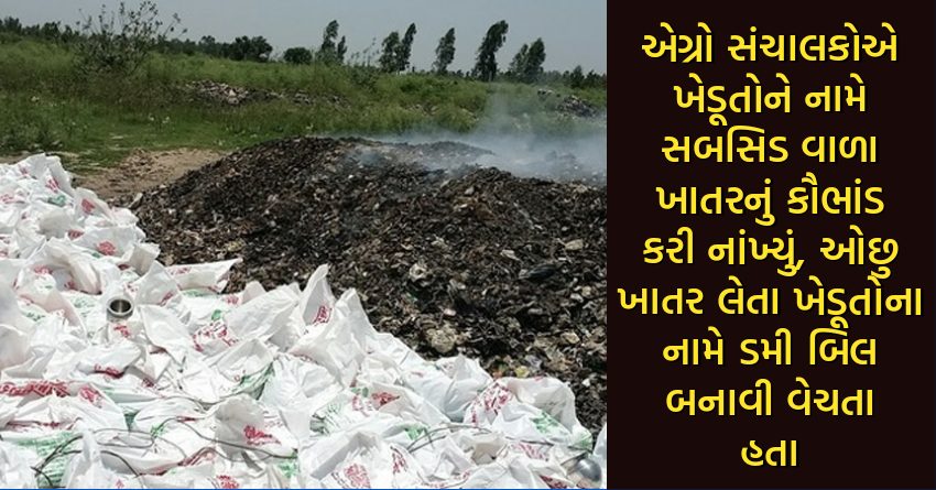 એગ્રો સંચાલકોએ ખેડૂતોને નામે સબસિડ વાળા ખાતરનું કૌભાંડ કરી નાંખ્યું, ઓછુ ખાતર લેતા ખેડૂતોના નામે ડમી બિલ બનાવી વેચતા હતા