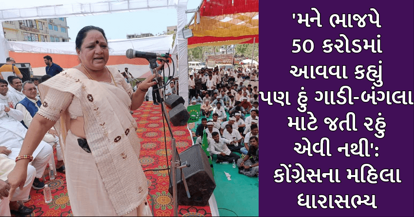 ‘મને ભાજપે 50 કરોડમાં આવવા કહ્યું પણ હું ગાડી-બંગલા માટે જતી રહું એવી નથી’: કોંગ્રેસના મહિલા ધારાસભ્ય