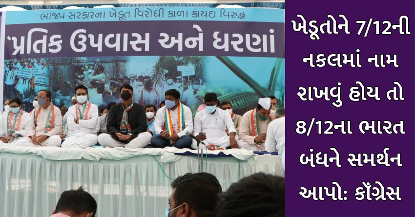 ખેડૂતોને 7/12ની નકલમાં નામ રાખવું હોય તો 8/12ના ભારત બંધને સમર્થન આપો: કૉંગ્રેસ