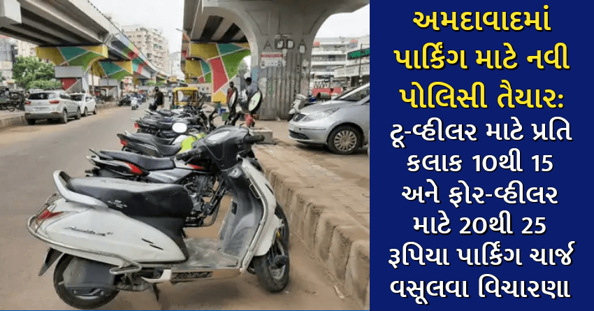 અમદાવાદમાં પાર્કિંગ માટે નવી પોલિસી તૈયાર: ટૂ-વ્હીલર માટે પ્રતિ કલાક 10થી 15 અને ફોર-વ્હીલર માટે 20થી 25 રૂપિયા પાર્કિંગ ચાર્જ વસૂલવા વિચારણા