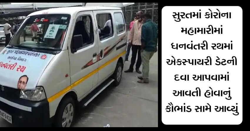 સુરતમાં કોરોના મહામારીમાં ધનવંતરી રથમાં એકસ્પાયરી ડેટની દવા આપવામાં આવતી હોવાનું કૌભાંડ સામે આવ્યું