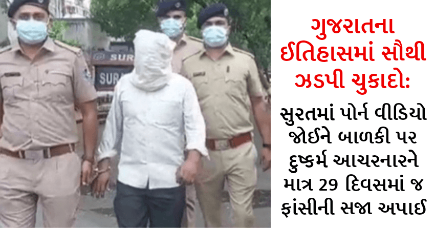 ગુજરાતના ઈતિહાસમાં સૌથી ઝડપી ચુકાદો: સુરતમાં પોર્ન વીડિયો જોઈને બાળકી પર દુષ્કર્મ આચરનારને માત્ર 29 દિવસમાં જ ફાંસીની સજા અપાઈ