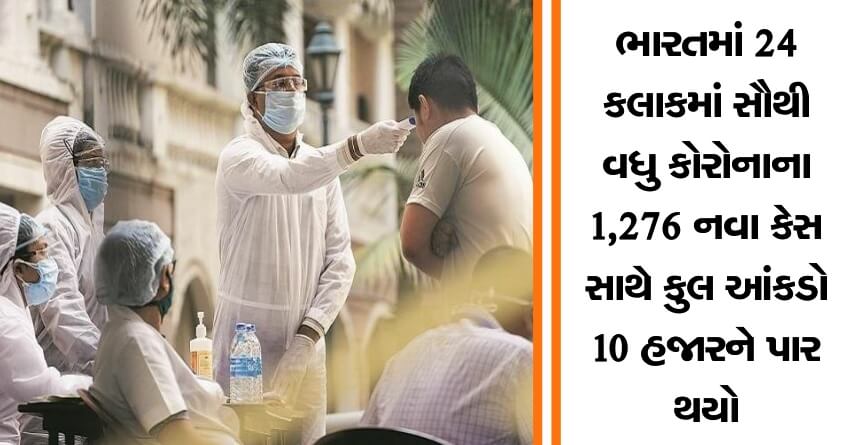 દેશમાં 24 કલાકમાં સૌથી વધુ કોરોનાના 1,276 નવા કેસ સાથે કુલ આંકડો 10 હજારને પાર થયો