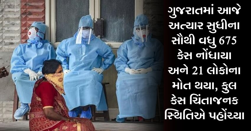 ગુજરાતમાં આજે અત્યાર સુધીના સૌથી વધુ 675 કેસ નોંધાયા અને 21 લોકોના મોત થયા, કુલ કેસ ચિંતાજનક સ્થિતિએ પહોંચ્યા