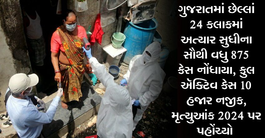 ગુજરાતમાં છેલ્લાં 24 કલાકમાં અત્યાર સુધીના સૌથી વધુ 875 કેસ નોંધાયા, કુલ ઍક્ટિવ કેસ 10 હજાર નજીક, મૃત્યુઆંક 2024 પર પહોંચ્યો