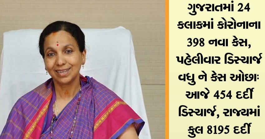 ગુજરાતમાં 24 કલાકમાં કોરોનાના 398 નવા કેસ, પહેલીવાર ડિસ્ચાર્જ વધુ ને કેસ ઓછાઃ આજે 454 દર્દી ડિસ્ચાર્જ, રાજ્યમાં કુલ 8195 દર્દી અને મૃત્યુઆંક 493