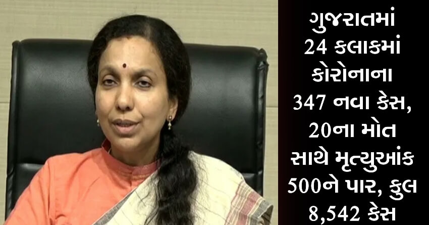 ગુજરાતમાં 24 કલાકમાં કોરોનાના 347 નવા કેસ, 20ના મોત સાથે મૃત્યુઆંક 500ને પાર, કુલ 8,542 કેસ