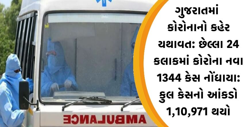 ગુજરાતમાં કોરોનાનો કહેર યથાવત: છેલ્લા 24 કલાકમાં કોરોના નવા 1344 કેસ નોંધાયા: કુલ કેસનો આંકડો 1,10,971 થયો