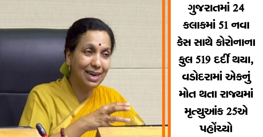 ગુજરાતમાં 24 કલાકમાં 51 નવા કેસ સાથે કોરોનાના કુલ 519 દર્દી થયા, વડોદરામાં એકનું મોત થતા રાજ્યમાં મૃત્યુઆંક 25એ પહોંચ્યો