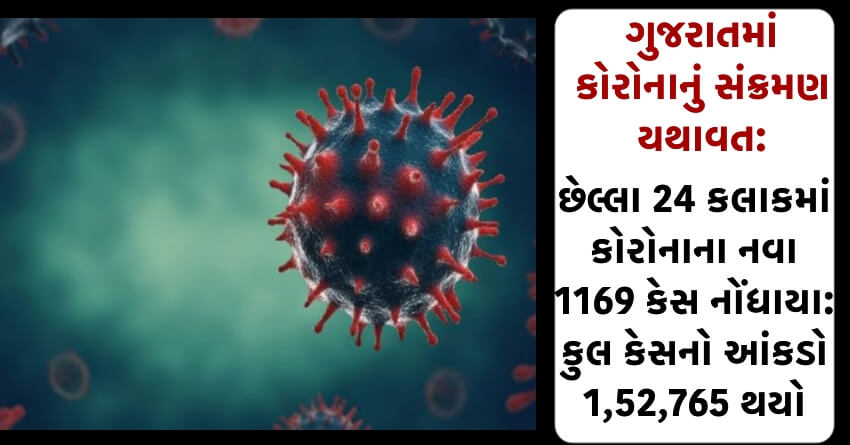 ગુજરાતમાં કોરોનાનું સંક્રમણ યથાવત: છેલ્લા 24 કલાકમાં કોરોનાના નવા 1169 કેસ નોંધાયા: કુલ કેસનો આંકડો 1,52,765 થયો