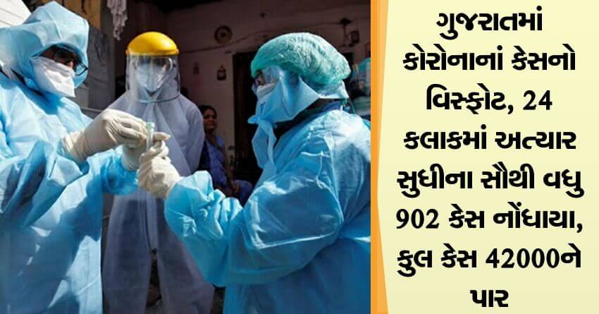ગુજરાતમાં કોરોનાનાં કેસનો વિસ્ફોટ, 24 કલાકમાં અત્યાર સુધીના સૌથી વધુ 902 કેસ નોંધાયા, કુલ કેસ 42000ને પાર