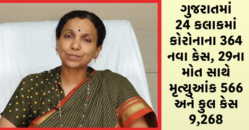 ગુજરાતમાં 24 કલાકમાં કોરોનાના 364 નવા કેસ, 29ના મોત સાથે મૃત્યુઆંક 566 અને કુલ કેસ 9,268
