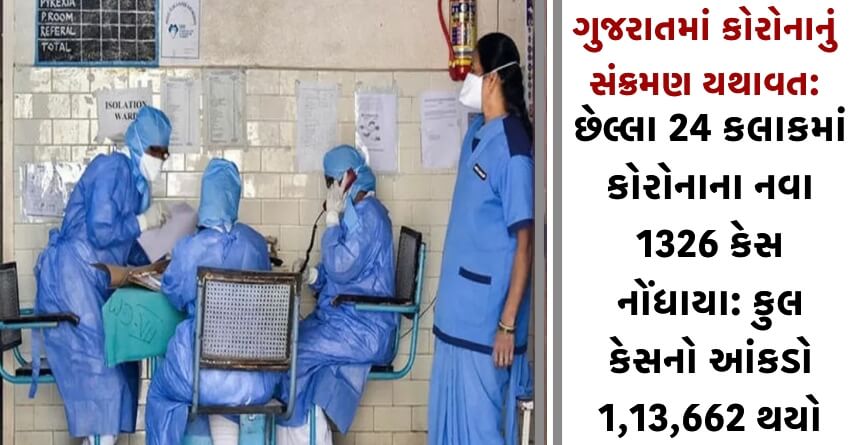 ગુજરાતમાં કોરોનાનું સંક્રમણ યથાવત: છેલ્લા 24 કલાકમાં કોરોનાના નવા 1326 કેસ નોંધાયા: કુલ કેસનો આંકડો 1,13,662 થયો