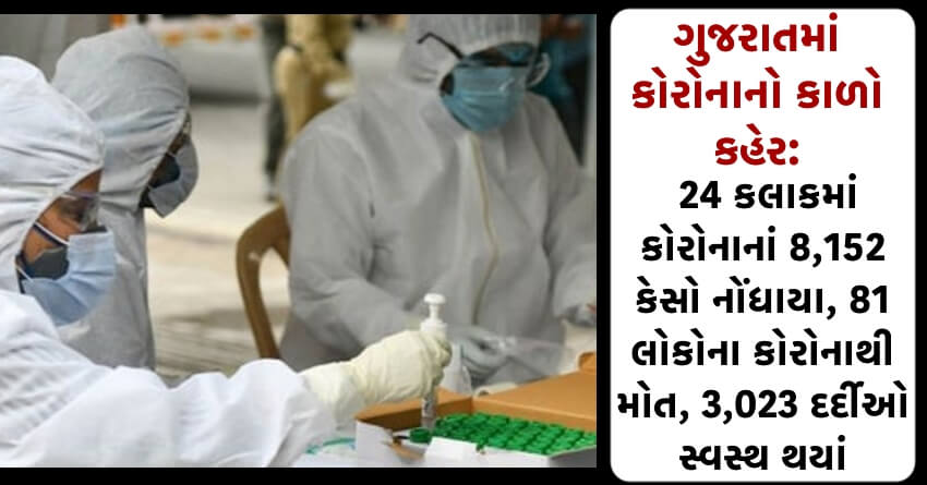 ગુજરાતમાં કોરોનાનો કાળો કહેર: છેલ્લા 24 કલાકમાં રાજ્યમાં કોરોનાનાં 8,152 કેસો નોંધાયા, 81 લોકોના કોરોનાથી મોત, 3,023 દર્દીઓ સ્વસ્થ થયાં