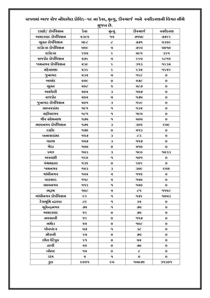 અમદાવાદ શહેરમાં રાજ્યના સૌથી વધુ 2396 કેસ તો અમદાવાદ ગ્રામ્યમાં 64 કેસ નોંધાયા છે. જ્યારે સુરત શહેરમાં 598 નવા કેસ, જ્યારે સુરત ગ્રામ્યમાં 208 કેસ નોંધાયા છે. વડોદરા શહેરમાં 569 કેસ, જ્યારે ગ્રામ્યમાં 465 કેસ નોંધાયા. રાજકોટ શહેરમાં 274 કેસ અને ગ્રામ્યમાં 202 કેસ નોંધાયા છે.ત્યારે જાણો 24 કલાક દરમિયાન રાજ્યના તમામ જિલ્લામાં નોંધાયેલ કેસની વિગત….