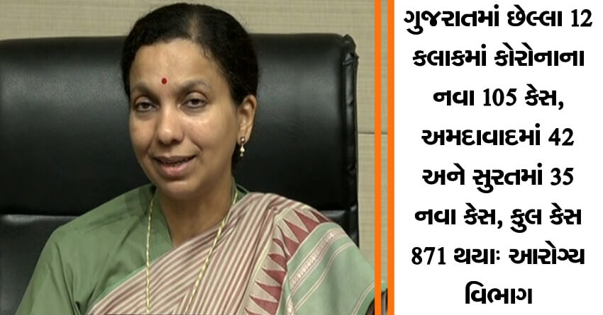 ગુજરાતમાં છેલ્લા 12 કલાકમાં કોરોનાના નવા 105 કેસ, અમદાવાદમાં 42 અને સુરતમાં 35 નવા કેસ, કુલ કેસ 871 થયાઃ આરોગ્ય વિભાગ