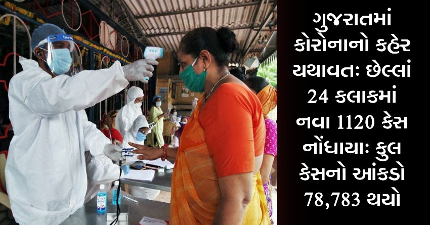 ગુજરાતમાં કોરોનાનો કહેર યથાવત: છેલ્લાં 24 કલાકમાં નવા 1120 કેસ નોંધાયા: કુલ કેસનો આંકડો 78,783 થયો