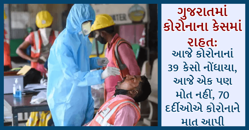 ગુજરાતમાં કોરોનાના કેસમાં રાહત: આજે કોરોનાનાં 39 કેસો નોંધાયા, આજે એક પણ મોત નહીં, 70 દર્દીઓએ કોરોનાને માત આપી