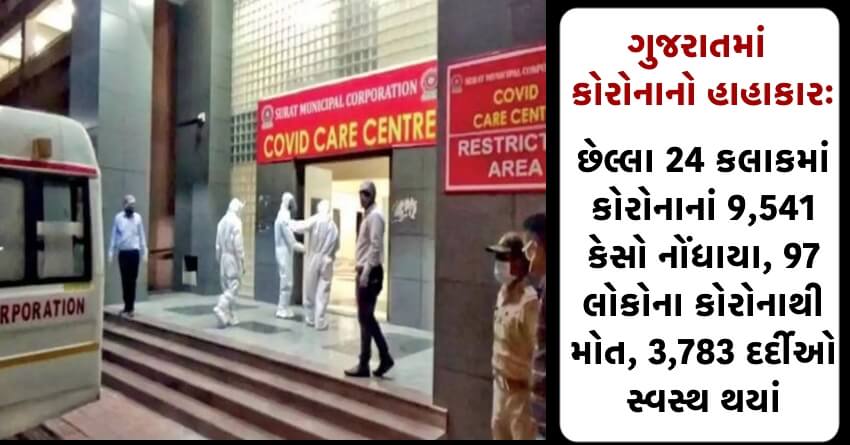 ગુજરાતમાં કોરોનાનો હાહાકારઃ છેલ્લા 24 કલાકમાં કોરોનાનાં 9,541 કેસો નોંધાયા, 97 લોકોના કોરોનાથી મોત, 3,783 દર્દીઓ સ્વસ્થ થયાં