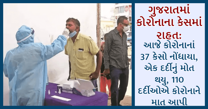 ગુજરાતમાં કોરોનાના કેસમાં રાહત: આજે કોરોનાનાં 37 કેસો નોંધાયા, એક દર્દીનું મોત થયુ, 110 દર્દીઓએ કોરોનાને માત આપી