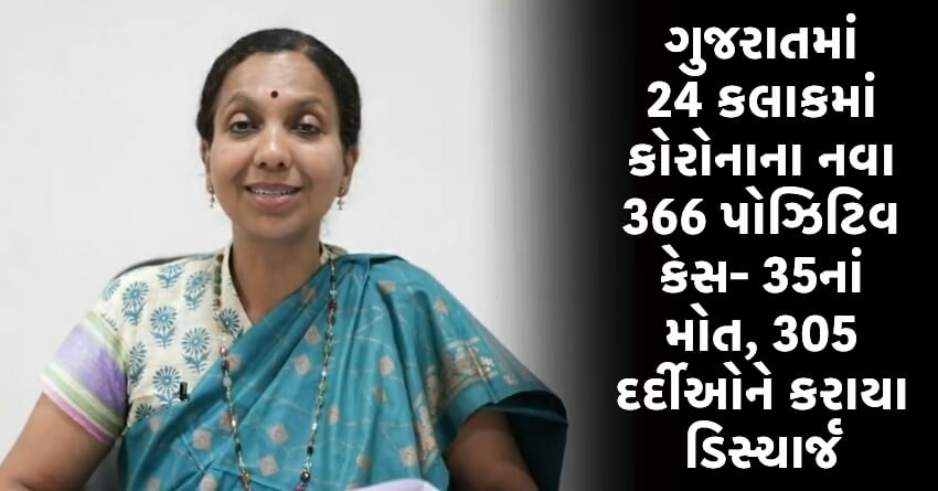 ગુજરાતમાં 24 કલાકમાં કોરોનાના નવા 366 પોઝિટિવ કેસ- 35નાં મોત, 305 દર્દીઓને કરાયા ડિસ્ચાર્જ