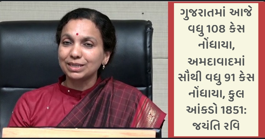 ગુજરાતમાં આજે વધુ 108 કેસ નોંધાયા, અમદાવાદમાં સૌથી વધુ 91 કેસ નોંધાયા, કુલ આંકડો 1851: જયંતિ રવિ