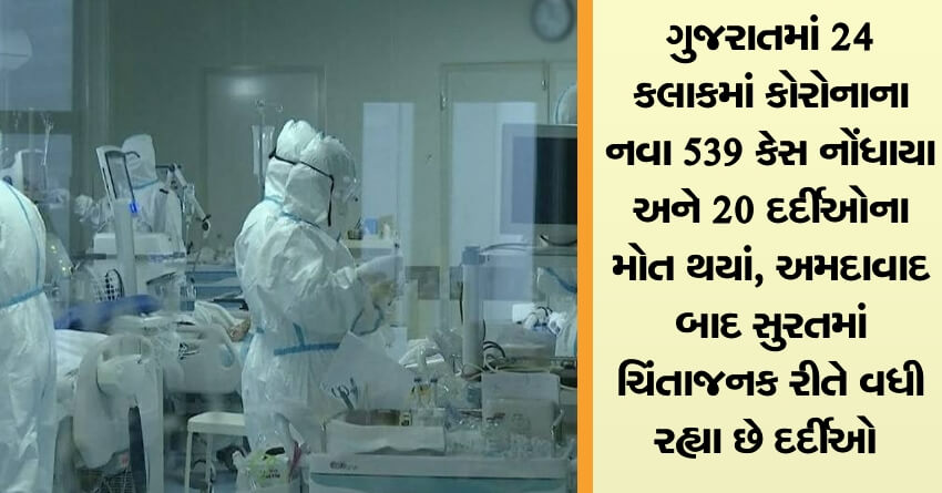 ગુજરાતમાં 24 કલાકમાં કોરોનાના નવા 539 કેસ નોંધાયા અને 20 દર્દીઓના મોત થયાં, અમદાવાદ બાદ સુરતમાં ચિંતાજનક રીતે વધી રહ્યા છે કોરોનાના દર્દીઓ