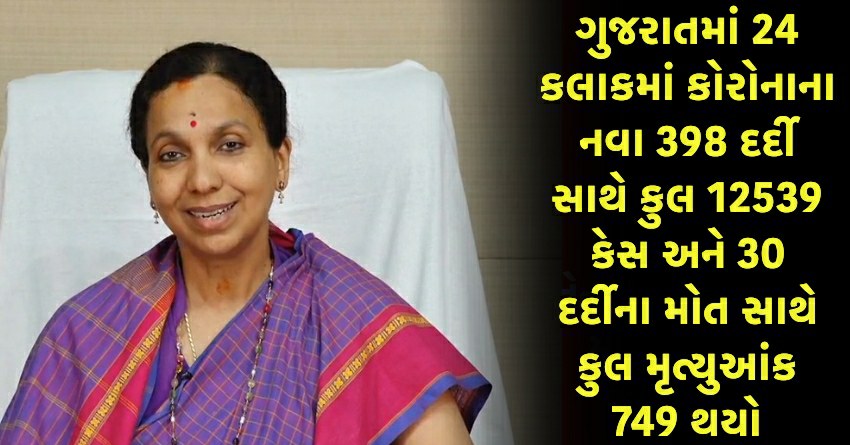 ગુજરાતમાં 24 કલાકમાં કોરોનાના નવા 398 દર્દી સાથે કુલ 12539 કેસ અને 30 દર્દીના મોત સાથે કુલ મૃત્યુઆંક 749 થયો