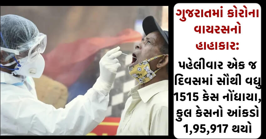 ગુજરાતમાં કોરોના વાયરસનો હાહાકાર: પહેલીવાર એક જ દિવસમાં સૌથી વધુ 1515 કેસ નોંધાયા, કુલ કેસનો આંકડો 1,95,917 થયો