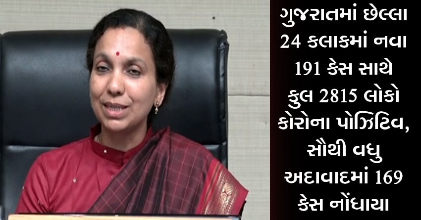 ગુજરાતમાં છેલ્લા 24 કલાકમાં નવા 191 કેસ સાથે કુલ 2815 લોકો કોરોના પોઝિટિવ, સૌથી વધુ અદાવાદમાં 169 કેસ નોંધાયા