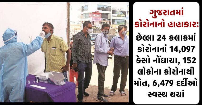 ગુજરાતમાં કોરોનાનો હાહાકાર: છેલ્લા 24 કલાકમાં કોરોનાનાં 14,097 કેસો નોંધાયા, 152 લોકોના કોરોનાથી મોત, 6,479 દર્દીઓ સ્વસ્થ થયાં