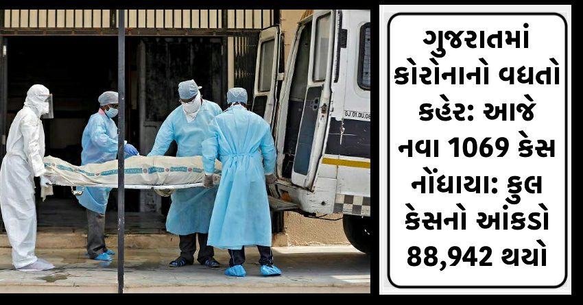ગુજરાતમાં કોરોનાનો વધતો કહેર: આજે નવા 1069 કેસ નોંધાયા: કુલ કેસનો આંકડો 88,942 થયો