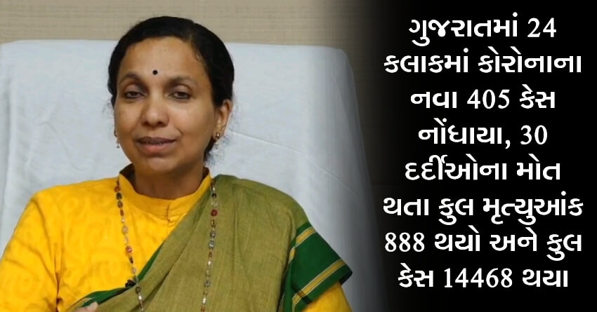 ગુજરાતમાં છેલ્લાં 24 કલાકમાં કોરોનાના નવા 405 કેસ નોંધાયા, 30 દર્દીઓના મોત થતા કુલ મૃત્યુઆંક 888 થયો અને કુલ કેસ 14468 થયા