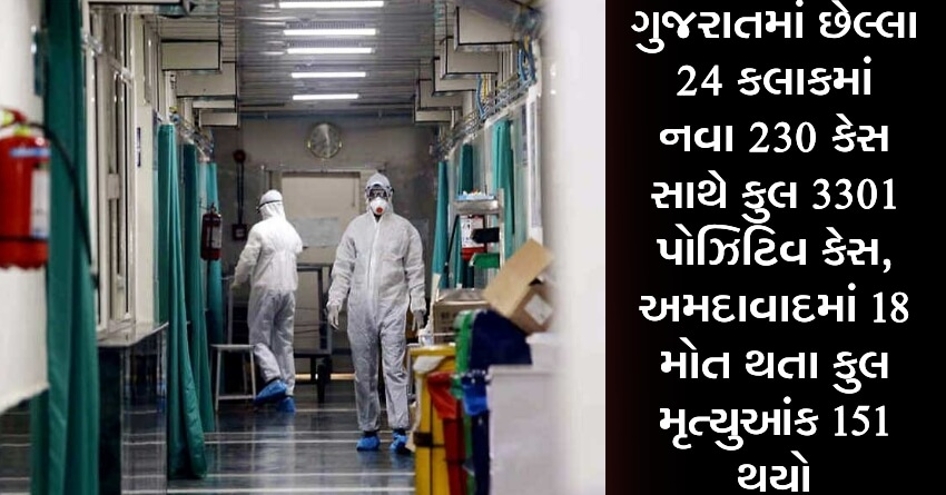 ગુજરાતમાં છેલ્લા 24 કલાકમાં નવા 230 કેસ સાથે કુલ 3301 પોઝિટિવ કેસ, અમદાવાદમાં 18 મોત થતા કુલ મૃત્યુઆંક 151 થયો