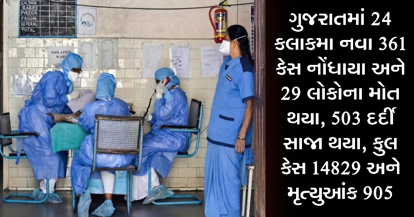 ગુજરાતમાં 24 કલાકમા નવા 361 કેસ અને 29 મોત, 503 દર્દી સાજા થયા, કુલ કેસ 14829 અને મૃત્યુઆંક 905 થયો