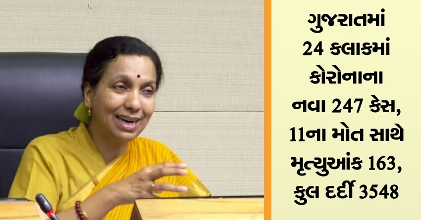 ગુજરાતમાં 24 કલાકમાં કોરોનાના નવા 247 કેસ, 11ના મોત સાથે મૃત્યુઆંક 163, કુલ દર્દી 3548 થયા