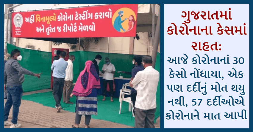 ગુજરાતમાં કોરોનાના કેસમાં રાહત: આજે કોરોનાનાં 30 કેસો નોંધાયા, એક પણ દર્દીનું મોત થયુ નથી, 57 દર્દીઓએ કોરોનાને માત આપી