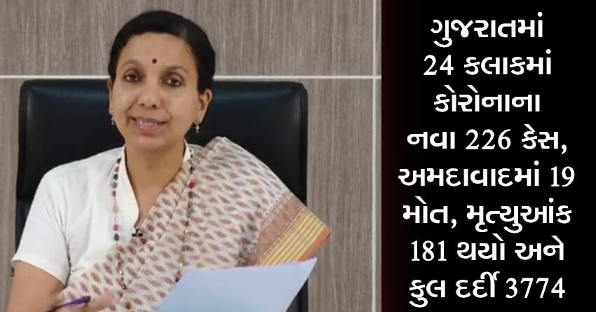 ગુજરાતમાં 24 કલાકમાં કોરોનાના નવા 226 કેસ, અમદાવાદમાં 19 મોત, મૃત્યુઆંક 181 થયો અને કુલ દર્દી 3774 થયા