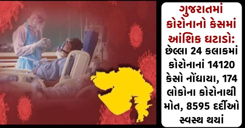 ગુજરાતમાં કોરોનાનો કેસમાં આંશિક ઘટાડો: છેલ્લા 24 કલાકમાં કોરોનાનાં 14120 કેસો નોંધાયા, 174 લોકોના કોરોનાથી મોત, 8595 દર્દીઓ સ્વસ્થ થયાં