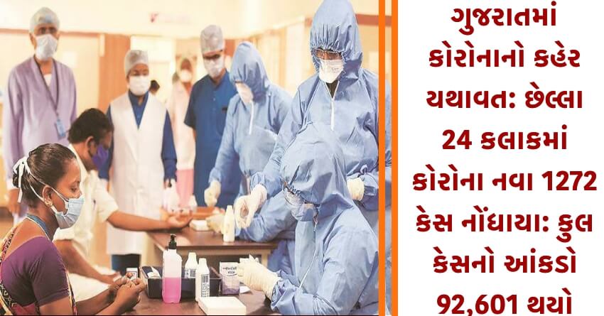 ગુજરાતમાં કોરોનાનો કહેર યથાવત: છેલ્લા 24 કલાકમાં કોરોના નવા 1272 કેસ નોંધાયા: કુલ કેસનો આંકડો 92,601 થયો
