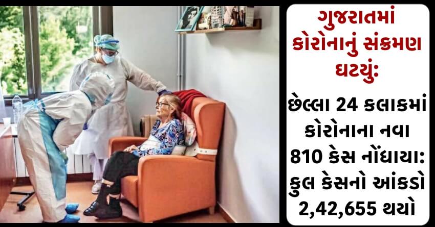 ગુજરાતમાં કોરોનાનું સંક્રમણ ઘટયું: છેલ્લા 24 કલાકમાં કોરોનાના નવા 810 કેસ નોંધાયા: કુલ કેસનો આંકડો 2,42,655 થયો
