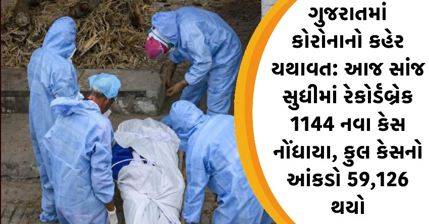 ગુજરાતમાં કોરોનાનો કહેર યથાવત: આજ સાંજ સુધીમાં રેકોર્ડબ્રેક 1144 નવા કેસ નોંધાયા, કુલ કેસનો આંકડો 59,126 થયો