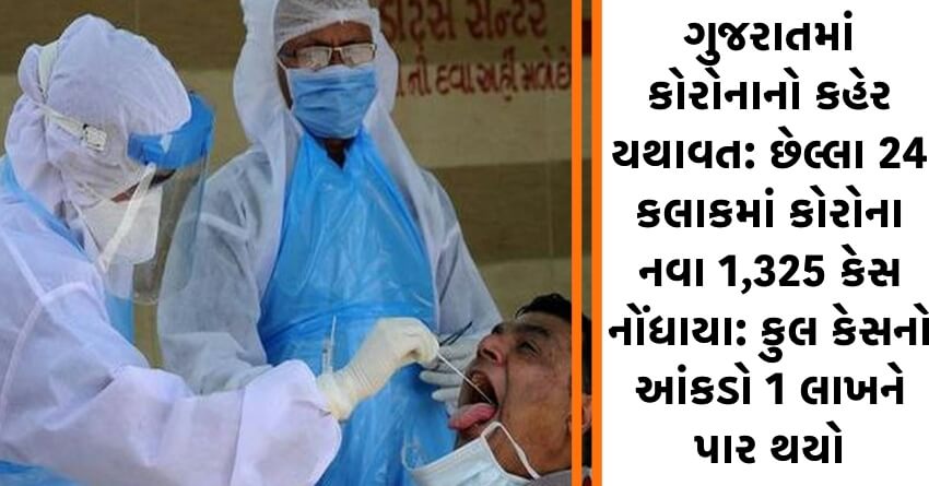 ગુજરાતમાં કોરોનાનો કહેર યથાવત: છેલ્લા 24 કલાકમાં કોરોના નવા 1,325 કેસ નોંધાયા: કુલ કેસનો આંકડો 1 લાખને પાર થયો
