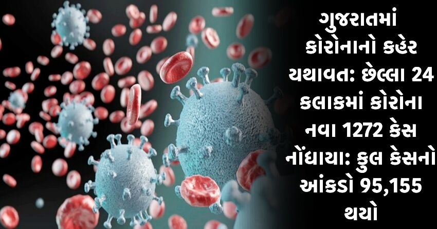 ગુજરાતમાં કોરોનાનો કહેર યથાવત: છેલ્લા 24 કલાકમાં કોરોના નવા 1272 કેસ નોંધાયા: કુલ કેસનો આંકડો 95,155 થયો
