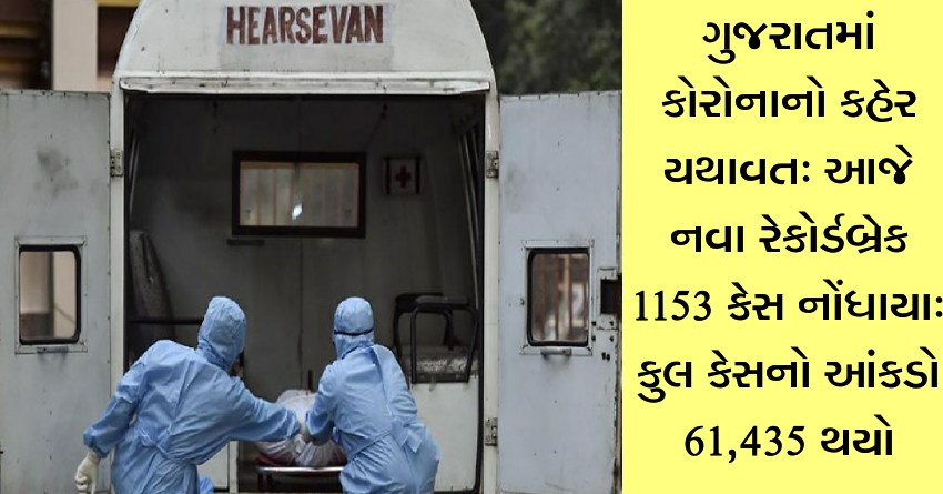 ગુજરાતમાં કોરોનાનો કહેર યથાવત: આજે નવા રેકોર્ડબ્રેક 1153 કેસ નોંધાયા: કુલ કેસનો આંકડો 61,435 થયો