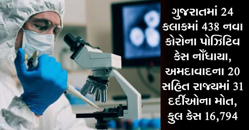 ગુજરાતમાં 24 કલાકમાં 438 નવા કોરોના પોઝિટિવ કેસ નોઁધાયા, અમદાવાદના 20 સહિત રાજ્યમાં 31 દર્દીઓના મોત, કુલ કેસ 16,794 થયા